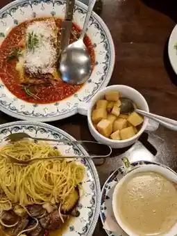 餐前会提供免费面包。我们点了千层面、蘑菇汤、牛排油面和瑞可塔奶酪沙拉。总的来说,食物品质上乘,味道鲜美。需要注意的是,油面略带辣味,所以不耐辣的人请谨慎选择。