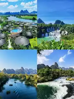 📍必游景点:德天跨国瀑布,亚洲最大、世界第四大跨国瀑布,气势磅礴,水雾缭绕;鸣石乡,典型的喀斯特山水风光,乘坐竹筏游览,仿佛置身于中国水墨画中;广西崇左白头叶猴国家级自然保护区,观赏珍稀的白头叶猴。