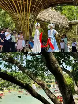 1⃣ 竹筏🚣♀️ 您可以划着竹筏来到瀑布前感受它的气势。沿途会有越南小船过来兜售商品。2⃣