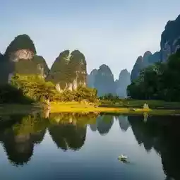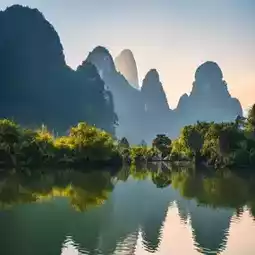 - **清晨**:6:00 乘车前往**仙山瑶池**,拍摄雾气缭绕的喀斯特湿地。-
