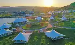 拥有72万平方米水域和38万平方米陆地,两者相得益彰,构成了一幅风景如画的生态画卷。您可以享受宁静的垂钓时光,也可以体验浮桥、射箭、竞技射箭、草地滑行、UTV丛林越野等刺激的活动——所有活动均配备专业装备和教练,确保安全又充满乐趣。入住豪华露营帐篷,与朋友们在星空下放松身心,尽情享受夏夜的宁静之美。