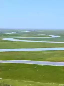 能否看到九个太阳连成一线,真的要看运气和天气!我们早上进入景区,没有等到日落,但微蓝的天空倒映在九曲十八弯上,也十分美丽。现在我明白为什么这里被称为“泉水丰沛”了。