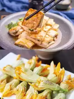 4️⃣ 酿南瓜花:甜美的南瓜花包裹着豆腐和肉末