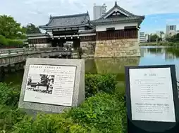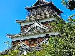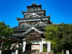 广岛城(広島城,Hiroshimajō),又称鲤鱼城,是建于城市中心平原而非山顶的典型城堡。其主城楼高五层,四周环绕着护城河。城内还有神社、一些遗址以及部分重建的二之丸(第二道防线)建筑。