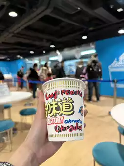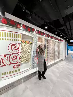 我走进这座占地10,000平方英尺的方便面主题乐园,首先映入眼帘的是标志性的杯面墙,上面展示着来自17个国家的口味。