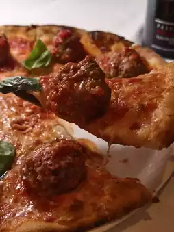 餐厅的披萨🍕饼皮厚薄适中,既不会太厚重也不会太油腻,所以吃起来很清爽。加上马苏里拉奶酪,拉丝效果也很好。肉丸口感鲜嫩,不干柴,还带有一丝香草🌿的香味。