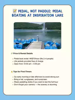 在灵感湖 (Inspiration Lake) 体验脚踏船是完美的休闲水上活动。风景优美,价格实惠,而且简单易学——无需课程,只需一点腿部力量和灿烂的笑容。非常适合想要放慢脚步、享受水上乐趣的家庭、朋友或情侣。🌸💖🚤
