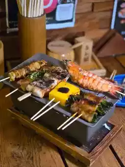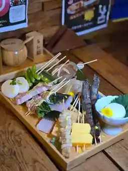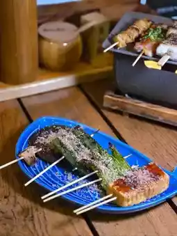 葱香黑猪五花肉串 $48 、日式韭菜猪肉卷 $68 、鸡胸肉软骨串 $32、鸡皮串 $32、秋葵 $28 、迷你青椒 $28、日式香菇 $28 。地址:高知站📍 苏豪区格雷厄姆街46号地下