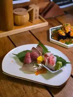拼盘包含鰤鱼、鲣鱼、剑鱼和金眼鲷。所有的刺身都无比新鲜美味‼️ 我尤其喜欢金眼鲷,这是一种稀有的美味,味道清淡,口感爽脆。✨