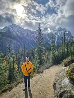 沿着徒步小径,你将欣赏到壮丽的山景,以及途中一处名为镜湖的休憩胜地。从那里,你还可以俯瞰下方的路易斯湖,湖水湛蓝如洗,与照片中呈现的景象如出一辙——绝无任何色彩修饰。