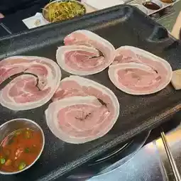 济州岛旅游 中文青年猪肉是一家位于中文旅游区附近的人气餐厅,专营济州黑猪肉和薄切五花肉。他们将济州五花肉、猪脸肉和猪颈肉切成2毫米厚的薄片,快速烹饪,减少油腻感。瘦肉和肥肉的完美比例造就了鲜美清爽的口感。腌韭菜、葱泡菜和泡菜等小菜与主菜完美搭配,是理想的米饭之选。您可以额外点购肉类,自助式吧台也让用餐体验更加舒适。餐厅内部干净整洁,空间宽敞,营造出轻松的用餐氛围。晚餐时段可能需要排队,建议提前到达。我强烈推荐这家位于西归浦的餐厅,这里能以超值的价格品尝到美味的黑猪肉和薄切五花肉。