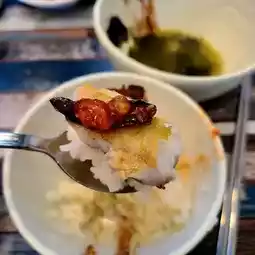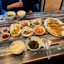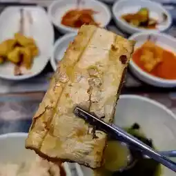 位于山房山和龙鱼里海岸附近,以新鲜烤鱼而闻名,从清晨就开始营业。我这次点的什锦烤鱼选用新鲜的济州岛未晒干的鱼,包括带鱼和方头鱼,新鲜烤制,口感鲜嫩多汁。鱼肉清淡无腥,淡淡的烟熏味更增添了清爽的口感。配菜也十分精致。赠送的烤鱼饼更是锦上添花。这家当地烤鱼餐厅非常适合沿海自驾游、享用早午餐或早午餐。