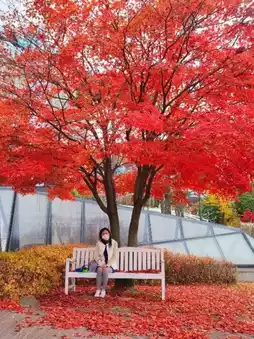宽阔的草坪上已经铺满了金黄和火红的枫叶,目光所及之处,宛如一幅秋日风景画。