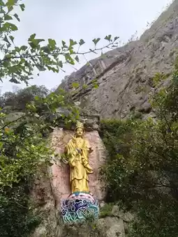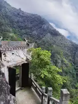 脚下是百米深的悬崖,身边是金碧辉煌的佛像。