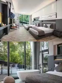 竹林私人温泉房堪称传奇!推开榻榻米式木屋的窗户,映入眼帘的是沙沙作响的竹林,工作人员已为您预先注入山泉水和玫瑰花瓣🌹的私人温泉池。泡温泉时,还能看到松鼠在树枝间跳跃🐿️!竹纤维床品凉爽舒适,无需空调!