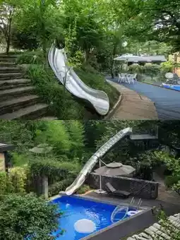 ✅ 高空滑水道:从玻璃栈道飞速滑入泉水池——五星级的尖叫体验!冰凉的水花带来清爽的感受。