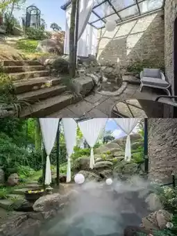 ✅ 山坡温泉群:七个竹林掩映的温泉池,隐匿于薄雾之中!硫磺池排毒养颜,薄荷池清凉舒爽,艾草池舒缓身心。黄昏时分,灯光璀璨的温泉池仿佛让人漂浮在云端(小贴士:带上冰镇啤酒,享受酣畅淋漓的泡汤体验!)。