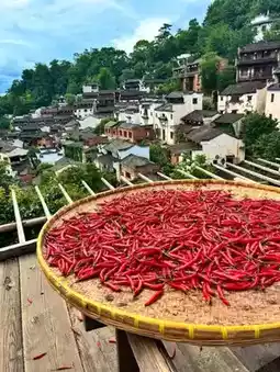#中国旅行 黄陵探索之旅将带您领略乡村风情和山峦美景。这座古老的村落坐落在陡峭的山坡上,以其层层叠叠的梯田而闻名。梯田上,辣椒、玉米和菊花花瓣等丰收的作物被盛放在巨大的圆形篮子里,经阳光晒干。一年四季,色彩斑斓的景象吸引着摄影爱好者和游客纷至沓来。