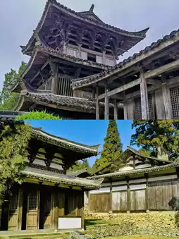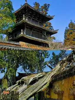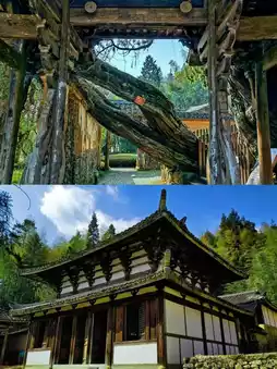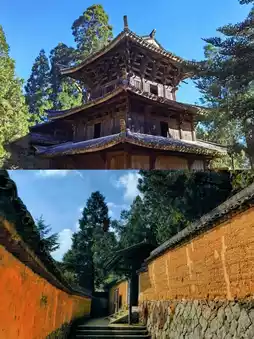 ,你会看到一棵古老的桧树屹立在寺门前,如同忠诚的守护者。踏入石寺的那一刻,时间仿佛静止。沿着土墙石径漫步,庭院中青苔丛生,绿意盎然,古老的建筑孤零零地伫立着。“台阶青苔,帘幕绿草”的诗意画面跃然眼前。大部分时间,寺内只有我一人。我漫步其中,时而驻足,时而停顿,被那份空旷与静谧深深震撼。这种独特的沉浸式体验,唯有亲身经历才能体会。石寺始建于南宋时期