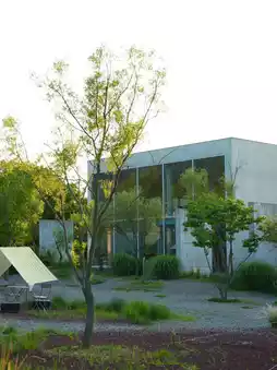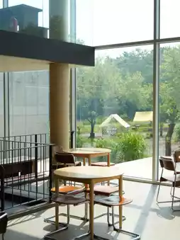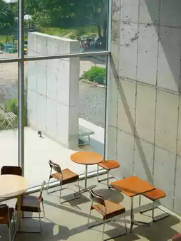 咖啡馆外观时尚现代,简洁的混凝土设计宛如一座艺术画廊。宽敞的窗户让温暖的阳光洒入室内,营造出完美的放松氛围。🌞☕️
