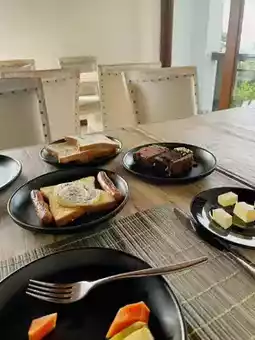 精心准备的早餐包括新鲜出炉的面包和新鲜水果。佐以香醇的茶饮,您可以一边聆听鸟儿的鸣叫,一边享受惬意的早晨。