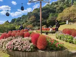 我们在网上购买了往返缆车票,只等了几分钟就上了车。缆车缓缓攀升,沿途风光旖旎。远处可以看到港口,近处郁郁葱葱的树木也开始泛黄变红。大约10分钟后,我们到达了景点的最高点。走出缆车🚡,我们来到了香草园的观景台上,这里设有餐厅和花坛,供游客休息和拍照。由于人太多,我们决定沿着山路步行下山,一路欣赏美景。小路两旁种满了各种花卉植物,每株植物都配有说明标签。几乎每走几步,就能找到一个完美的拍照角度。