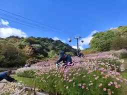 山脚下,一片花海在你眼前徐徐展开,令人惊喜不已。这里有一片宽阔的草坪,游客可以躺在吊床上放松身心,享受日光浴,欣赏花海,观看缆车缓缓驶过。蓝天白云,阳光温暖,构成了一幅如诗如画的美景,让人忍不住频频拍照。📸(^_^)