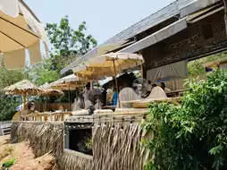 店铺采用巴厘岛风格装饰,以竹子和浅棕色家具为主。店内设有多种座位区,包括可爱的竹编椅、舒适的豆袋椅,以及可以放松身心的帆布床。🍹