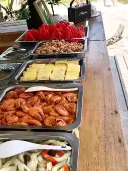 在海滩餐厅品尝当地海鲜。🦀🍤