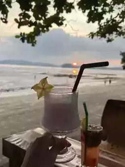 之后,我们去了奥南海滩前的一家鸡尾酒吧。🍹