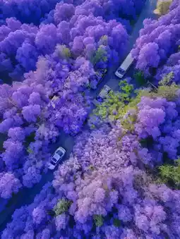 昆明蓝花楹的传奇之地。数百棵蓝花楹树沿着两公里长的道路两旁排列,编织成一条梦幻般的“蓝紫色隧道”👀!这里还有一个蓝花楹主题公园等你来探索。无论您是拍照还是赏花,这里都是您的最佳选择!别忘了品尝人气爆棚的蓝花楹冰淇淋,并参与文化创意市集和摄影比赛!