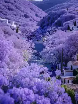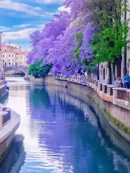 数百棵蓝花楹树倒映在清澈的河水中,构成一幅绝美的画卷🎨!在桃园码头乘船游览,沉浸在两岸浪漫的花海之中!昆明