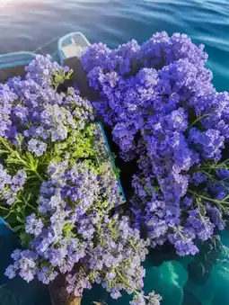 想要与蓝紫色的花海形成鲜明对比?那就穿上浅色衣服吧!抬头仰望,捕捉盛开花朵的惊艳之美!