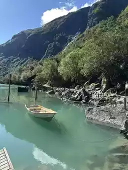 邦德胡斯湖是一个宁静祥和的湖泊,四周环绕着巍峨的山峰。这里的徒步路线适合推婴儿车和带狗狗,所以别找借口了——赶紧去吧!清晨时分,湖面如镜,倒映着美丽的景色,而且游客也比较少。