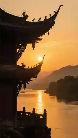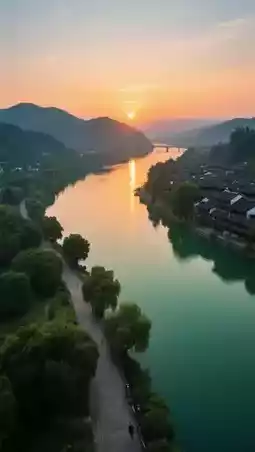 17:00 沿嘉陵江漫步,捕捉壮丽的日落倒影