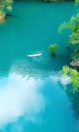 ✅卧龙潭:水面如镜,变幻莫测的色彩,是拍照和漂流的绝佳地点(50元/人)🏄♂️,全程2公里。✅鸳鸯湖:绿意盎然的