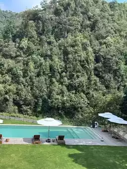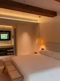 从长沙开车只需1.5小时。这家民宿隐匿于山谷之中,十分静谧,完全没有噪音。我入住的房间是原木风格,配有巨大的落地窗。躺在床上就能欣赏到壮丽的山景,还有一个私人温泉浴池,无比放松。