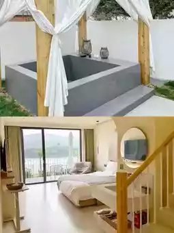 纯天然的温泉水泡进去,全身都暖洋洋的,所有的疲惫都烟消云散。最棒的是半露天的设计,每个房间都有自己的温泉池,私密又舒适。酒店充满了江南风情,庭院里的石头和绿植摆放得井然有序,宛如一幅水墨画。