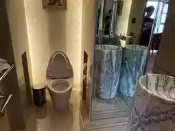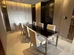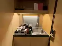 推开房门,首先映入眼帘的是宽敞的起居室。起居室一角设有洗手间。继续往里走,可以看到一张六人餐桌,旁边配有咖啡机和其他洗漱用品。当然,迷你吧也随时可用。