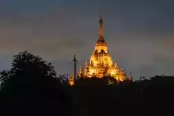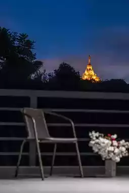黄昏时分,庭院更添几分浪漫情调。暖黄色的串灯亮起,远处金色的宝塔渐渐隐入暮色,只留下金色塔顶微弱的光芒;偶尔,傣族寺庙的钟声响起,伴着轻柔的河风。那一刻,所有的疲惫都悄然消散。看着宝塔由亮转暗,感受着芒石独特的悠闲节奏。
