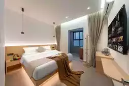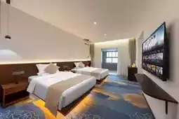 民宿客房融合了傣族文化的温暖与现代生活的便利。每间客房都以浅色调为主,搭配傣族织锦窗帘、实木家具和手工编织的地毯。墙上悬挂着当地艺术家的作品,处处体现着用心。更令人惊喜的是,房间配备了智能马桶和智能电视——漫长的一天结束后,智能马桶的温水模式能瞬间放松身心;躺在柔软的床上,您还可以通过语音控制电视选择节目,处处体现着贴心的细节。