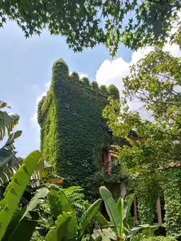 天空城堡(天堂城堡)位于苗栗县大湖乡。整座建筑都被郁郁葱葱的藤蔓覆盖,正对着梨玉潭水库,使其成为著名的梦幻拍照胜地。对于我们这些住在南方的人来说,由于地处偏远山区,前往这里是一段不短的旅程。经过漫长而疲惫的跋涉,我们终于到达了目的地。到了中午,我们已经饥肠辘辘,如果不提前预订,周末可能要等到晚餐才能用餐。在这里,食物的味道反而成了次要的;真正重要的是午后阳光洒在城堡外墙上的景象,营造出绝佳的拍照时机。每一张照片都美得令人窒息。除了视觉上的震撼,这里还能让人身心彻底放松。整理照片时,我实在难以抉择哪一张应该放在前面。这不仅是一家梦幻般的餐厅,更是一个令人叹为观止的景点。
