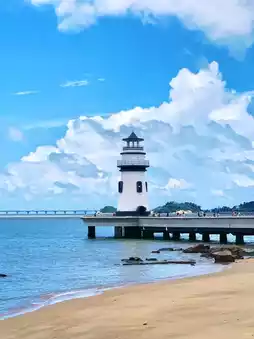 灯塔矗立在蔚蓝的大海旁,宛如动漫中的场景🗼 就连海水都呈现出渐变的果冻色💙
