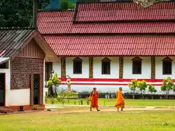 景色是户外爱好者的天堂。徒步小径通往偏远的少数民族村落、翠绿的稻田以及隐秘的洞穴,例如探康洞和探帕诺洞,在那里您可以探索奇特的钟乳石构造,聆听当地的传说故事。南乌河是皮划艇爱好者的天堂,您也可以在河岸边悠闲地欣赏渔民捕鱼的景象。傍晚时分,夕阳将河面染成绚丽的橙色和金色,是结束一天探索之旅后放松身心的完美背景。在村子里,您可以参观小寺庙,与友好的当地人聊天,并在家庭经营的小餐馆里品尝新鲜的老挝美食。