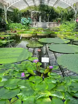 千万别错过亮点:温室区🏠展示了热带和沙漠植物🌴🌵。温室内的温度如同热带雨林般温暖舒适🌦️。这里还有一个孩子们一定会喜欢的小型淡水池塘🐠✨。