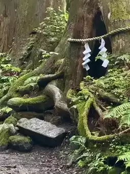 从表参道下来的第二天,长野县下起了雨。为了找个适合雨天游玩的地方,我决定去户隐神社。这里的参天大树让我想起了美国广袤的红杉林。虽然这里的树木略小一些,但装饰元素却更加丰富,比如神社、雕像和注连绳。雨天漫步于此,别有一番韵味;要说营造氛围,美国人还真比不上日本人。