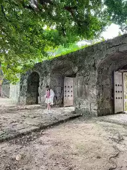 那霸市繁华主干道旁,矗立着一处历史遗迹:宗源寺遗址。宗源寺供奉琉球国王的亡灵,以其拱形石门而闻名,是冲绳石砌建筑的典型代表。它同时也是国家重要文化财产和县级指定有形文化财产。穿过石门,映入眼帘的是一棵巨大的榕树,据说是那霸市最大的榕树,也是一处能量圣地。这里是那霸市一处充满神秘气息的所在,透过石门和城墙,您也能感受到冲绳悠久的历史。宗源寺毗邻国际通,如果您有时间,不妨前来一探究竟。 【宗源寺遗址】