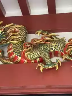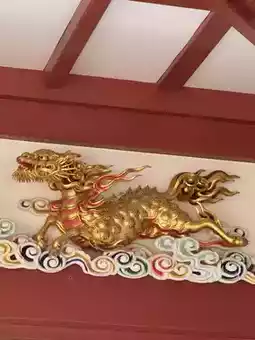 神兽金色的身躯象征着高贵与吉祥,鳞片和火焰般的鬃毛则分别代表着龙的威严和麒麟的吉祥。它不仅是装饰,更是守护神社和来访者的象征。