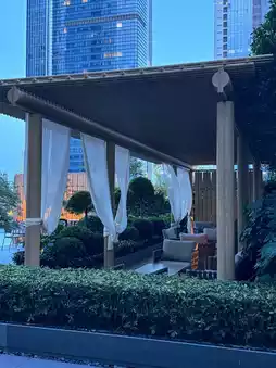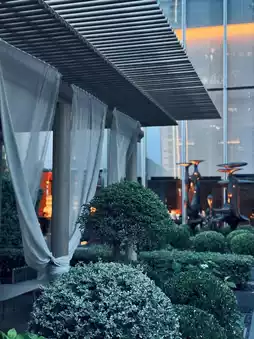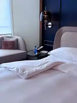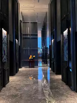 酒店位于河西国际金融中心大厦顶层。一楼礼宾部提供优质服务。客房内提供免费迷你吧,包括两瓶Voss气泡水。大堂一侧设有小型休息室,所有宾客均可使用,供应软饮、精选酒水以及烟熏三文鱼等小吃。即使是最基本的房型,虽然面积不大,但空间利用率极高——尤其是盥洗区,设有三扇推拉门,关闭时可形成独立空间,打开时则营造出通透感。客房最值得称道的特色在于其现代化的装饰、时尚的灯具以及多个无线充电站,尽显现代气息。Azzi Glasser洗浴用品和Dyson吹风机等高端设施进一步提升了客房的品质。