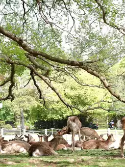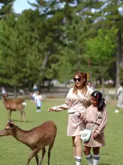 从火车站步行不远即可到达,沿着步道就能看到鹿群。抵达公园后,你会看到超过1000只鹿在公园里自由漫步,宛如一个巨大的围栏。在神道教中,鹿被视为“神的使者”。
